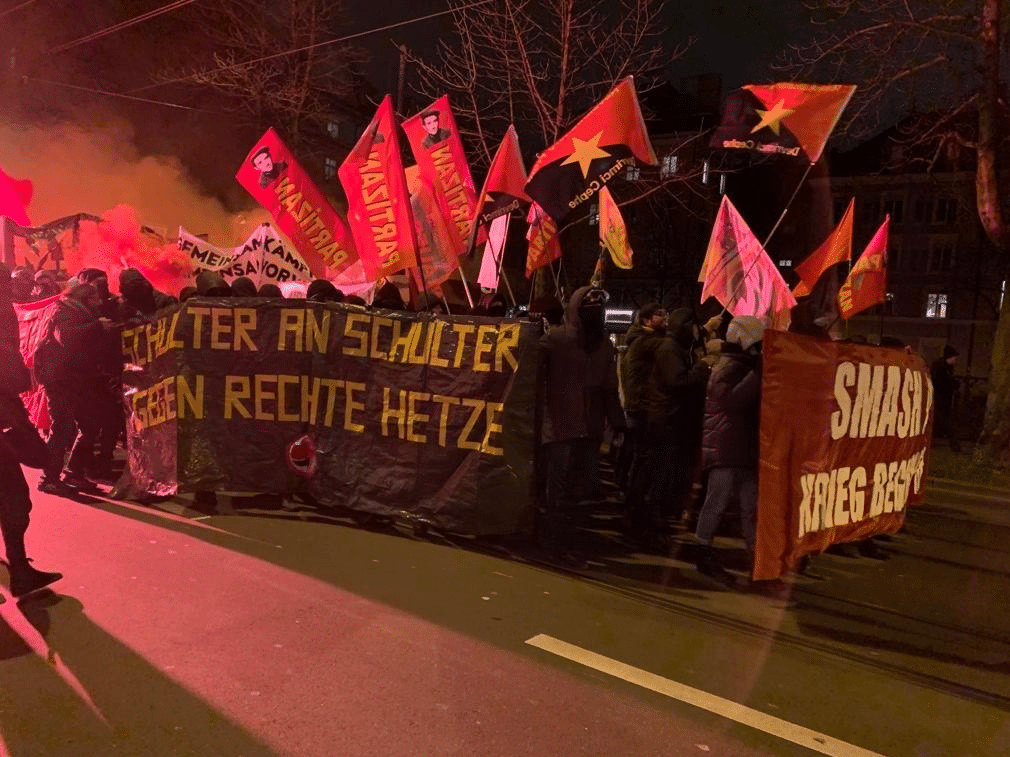 22 Ocak günü saat 18:00’de Zürih Helvetiaplatz’da aralarında Partizan okurlarının da olduğu yüzlerce kişilik kitle bir araya geldi, burada yapılan konuşmaların ardından havai fişekler, sis bombaları ve sloganlarla yürüyüşe geçti. Polisin yoğun yığınak yaptığı Staufacher’da hazırlanan tank maketleri yakılırken, diğer sokakta yolu kapatan Polisle kısa süreli bir çatışma yaşandı. Atılan havai fişeklerin isabet ettiği bazı polislerin yaralandığı görüldü.
