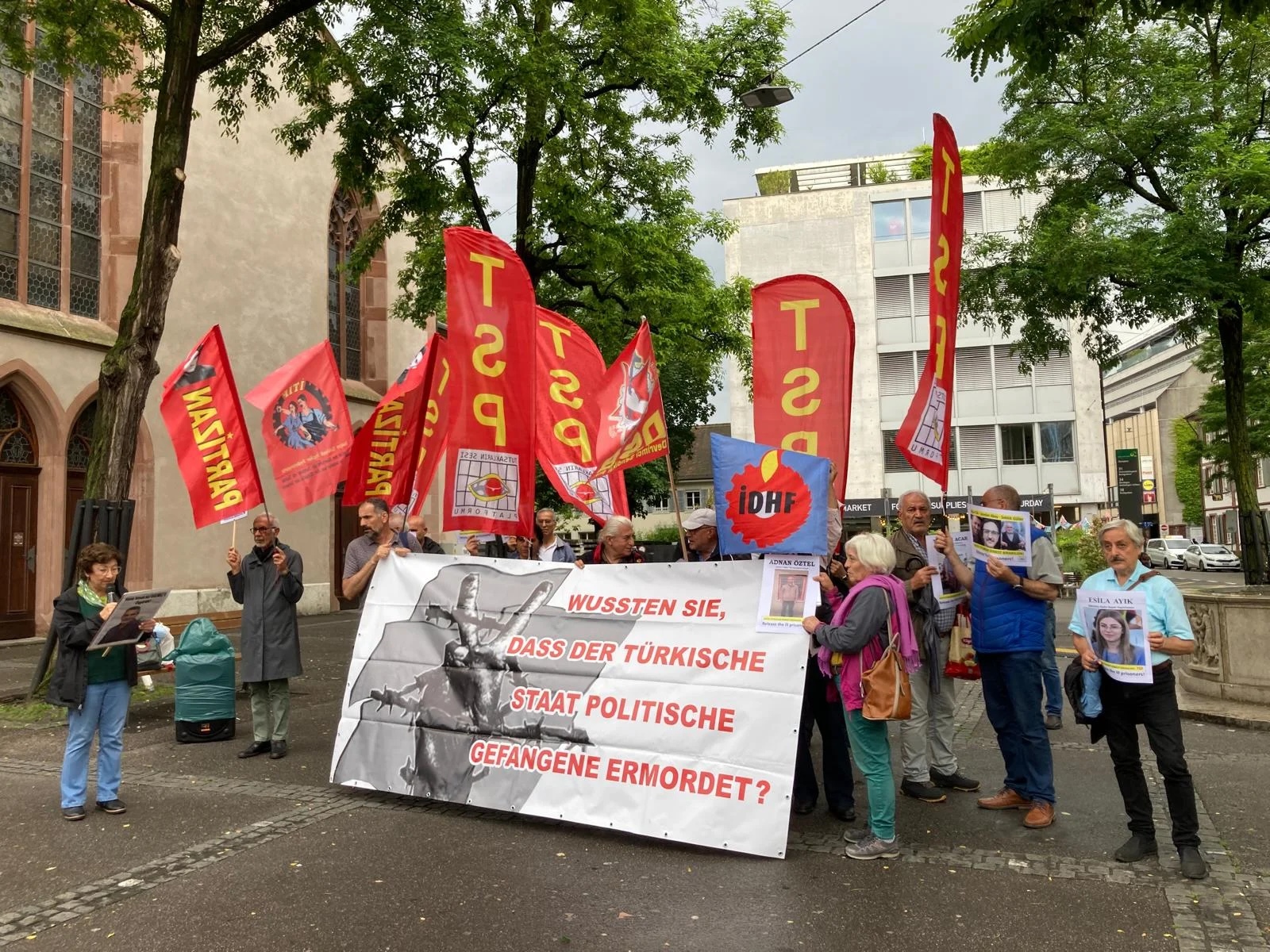 Tutsaklarla Dayanışma Platformu’nun çağrısıyla İsviçre’nin Basel kentindeki Claraplatz meydanında hasta tutsaklar için açıklama yapıldı. TSP, Dem-Kurd, Partizan, İsviçre Türkiyeli İşçiler Federasyonu (İTİF) ve PDD’nin yer aldığı platformu açıklamada Türkiye hapishanelerinde hasta tutsakların durumuna dikkat çekti, hasta tutsakların derhal serbest bırakılması istendi. Açıklamada, Türkiye hapishanelerinde yüzlerce hasta tutsağın ağır hastalıklara rağmen tahliye edilmediğini, tedavilerinin engellendiğini, bu uygulamaları “açık bir işkence politikası” denildi. Yaklaşık 2 bin hasta tutsağın bulunduğuna dikkat çekilerek Adalet Bakanlığı verilerine göre 2018 ile 2023 yılları arasında en az 2 bin 258 tutuklunun yaşamını yitirdiğini, sadece 2024 yılında ise bu sayının 709’a ulaştığını, bu insanlık dışı uygulamaların son verilesi gerektiğinin altı çizildi. Açıklamada ayrıca S ve Y tipi hapishanelerinde uygulanan ağır tecridin hasta tutsaklar üzerindeki yıkıcı etkileri oluşturduğuna ve bu tecrit sistemin hem fiziksel hastalıkları ağırlaştırdığı hem de psikolojik sorunların derinleştirdiği vurguladı.