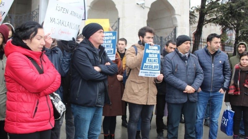 İşçiler, işe iade talebiyle öğrencilerin de desteği ile İstanbul Üniversitesi Beyazıt Kampüsü ana kapısı önünde eylem yaptı. “İşçi öğrenci el ele”, “Yaşasın işçi, öğrenci dayanışması” dövizleri taşıyan öğrenciler, “Atılan işçiler geri alınsın”, “Öğrenci direnen emekçinin yanında” sloganlarını attı.