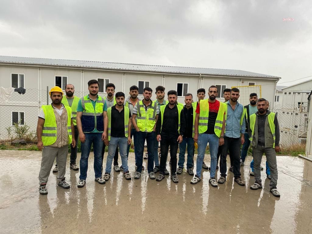 “İzmir Şehir Hastanesi şantiyesinde ELEKTROMAK bünyesinde çalışan üyelerimiz ödenmeyen ücretler ve kötü barınma ve beslenme koşullarına karşı iş bırakarak cevap veriyoruz. Taleplerimiz kabul edilene kadar eyleme devam edeceğiz. İnşaat işçisi köle değildir.”
