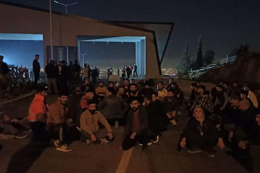 Eylem sonrasında, şantiyesinden çıkarılan ve şantiye kampına alınmayan işçiler kamp önünde oturma eylemine başladı.