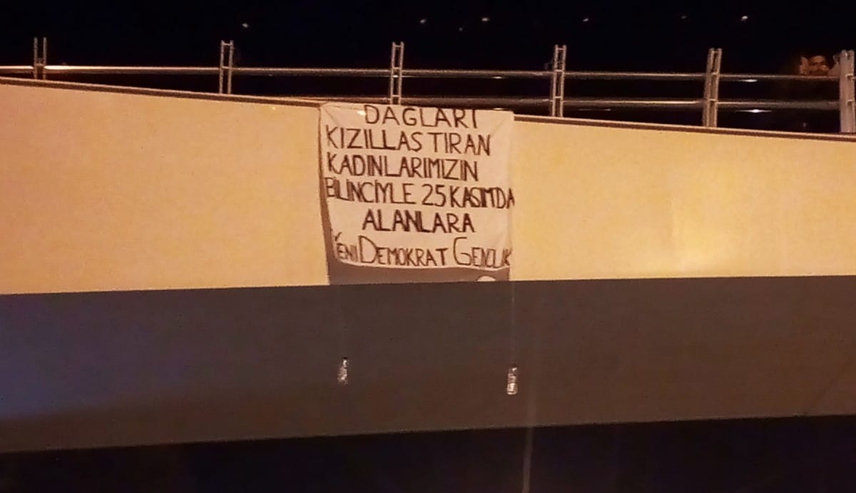 HABER MERKEZİ- İzmir YDG Konak Karayolları Köprüsü’nde 25 Kasım Kadına Karşı Şiddetle Mücadele ve Uluslararası Dayanışma günüyle ilgili pankart çalışması gerçekleştirdi.