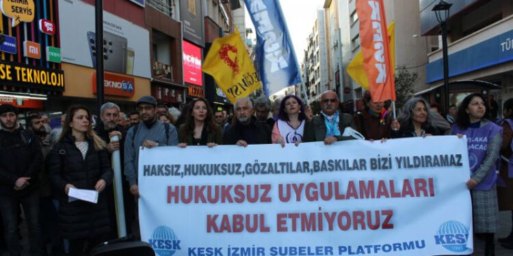 İzmir Cumhuriyet Başsavcılığının yürüttüğü soruşturma kapsamında 4 Mart sabahı ev baskınlarıyla gözaltına alınan ve aralarında Kamu Emekçileri Sendikaları Konfederasyonu (KESK) üyelerinin de bulunduğu 21 kişiden 5’i, “örgüt üyeliği” ve “örgüte finansman sağlama” iddiasıyla tutuklandı.
