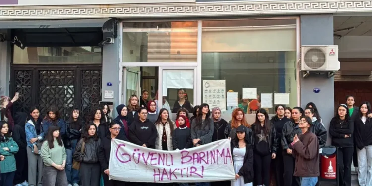 Öğrenciler tepkilerini dile getirmek ve seslerini duyurmak için yurt önünde basın açıklaması düzenledi. Kadın öğrenciler, “Güvenli Barınma Haktır”, “İnsanca Bir Yaşam İstiyoruz”, “Yaşasın Kadın Dayanışmamız” sloganlarını attı.