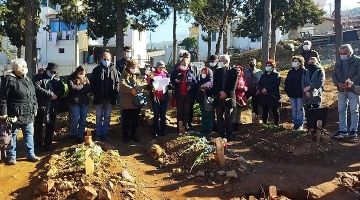 HABER MERKEZİ- Göçmenlere karşı şiddetin artışını kaygıyla izlediklerini belirten Halkların Köprüsü Derneği geçtiğimiz haftalarda yakılarak öldürülen üç Suriyeli göçmen işçinin İzmir Güzelbahçe’de bulunan Yelki Mezarlığı’ndaki mezarlarını ziyaret etti. Halkların Köprüsü Derneği ile birçok dernek, oda ve demokratik kitle örgütü temsilcisi ortak basın açıklaması düzenledi.