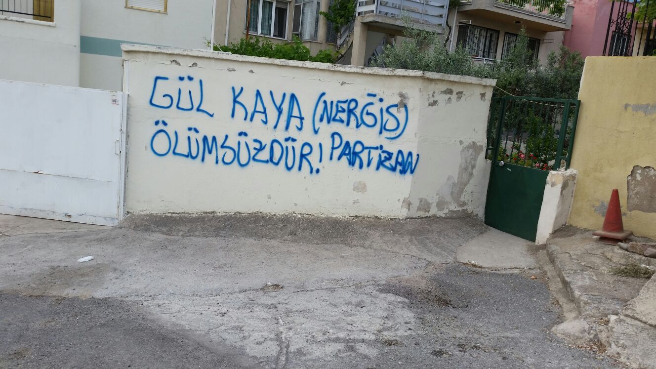 İZMİR- Dersim/Aliboğazı’nda çıkan çatışmada ölümsüzleşen Halk Savaşçıları Gül Kaya(Nergis) ve Hasret Tanrıverdi(Çiğdem) için İzmir’de yazılama çalışması gerçekleştirdi.