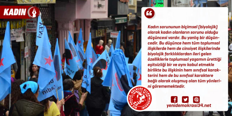Kadın sorununun biçimsel (biyolojik) olarak kadın olanların sorunu olduğu düşüncesi vardır. Bu yanlış bir düşüncedir. Bu düşünce hem tüm toplumsal ilişkilerde hem de cinsiyet ilişkilerinde biyolojik farklılıklardan ileri gelen özelliklerle toplumsal yaşamın ürettiği eşitsizliği bir ve aynı kabul etmekle birlikte bu ilişkinin hem sınıfsal karakterini hem de bu sınıfsal karaktere bağlı olarak oluşmuş olan tüm yönlerini görememektedir. Lenin 1920’de “Kapitalizm ekonomik ve dolayısıyla toplumsal eşitsizlik ile biçimsel eşitsizliği birleştirir. Bu, kapitalizmin, burjuvazinin yandaşlarınca, liberallerce, yalanlarla gizlenmeye çalışan ve küçük burjuva demokratlarca anlaşılmayan temel özelliklerden biridir. Kapitalizmin bu özelliğinden, başka şeylerin yanı sıra şu sonuç çıkar: Ekonomik eşitlik için kesin savaşımla birlikte kapitalist eşitsizliğin açıkça itiraf edilmesi ve belirli koşullarda bu eşit eşitsizlik itirafının proleter devlet düzeninde bile temel alınması (Sovyet anayasası) zorunluluktur.” (Kadın Sorunu Üzerine s.61) demişti.