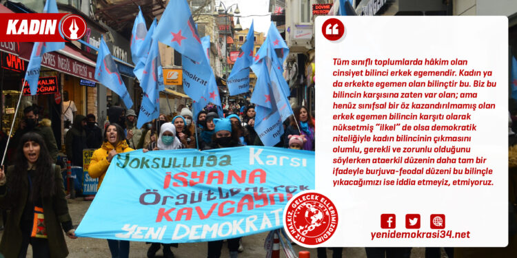 Tüm sınıflı toplumlarda hâkim olan cinsiyet bilinci erkek egemendir. Kadın ya da erkekte egemen olan bilinçtir bu. Biz bu bilincin karşısına zaten var olan; ama henüz sınıfsal bir öz kazandırılmamış olan erkek egemen bilincin karşıtı olarak nüksetmiş “ilkel” de olsa demokratik niteliğiyle kadın bilincinin çıkmasını olumlu, gerekli ve zorunlu olduğunu söylerken ataerkil düzenin daha tam bir ifadeyle burjuva-feodal düzeni bu bilinçle yıkacağımızı ise iddia etmeyiz, etmiyoruz. Hatta bu iddiaların “boş”, “saçma”, “hayalci” olduğunu söylüyoruz. Bununla birlikte “kadın bilinciyle ataerkil düzeni yıkamayız” diyerek cinsel olarak ezilenin bilincini reddetmek doğru değildir. Ataerkil düzende çifte sömürüye uğrayan, bu düzenin aynı zamanda taşıyıcı kolonu işlevini de gören kadınların sistemle çelişkilerinin derinleştiği bu noktada sisteme karşı konumlanmasının, kendi sorunları ekseninde de gelişmesinin gerekli olduğunu vurgulamış oluyoruz. Tohumun filiz vermesi gibi ezilen cins olarak kadında gelişen bu bilincin erkeğe ve tüm topluma doğru yayılması, ona sınıfsal bir içerik kazandırılmasının komünistlerin önemli siyasal görevlerinden biri olduğunu da buna eklemek gerekir. Ataerkil, burjuva, feodal toplumun tüm lekelerini taşırken komünist iddiadaki erkeklerin cinsiyetçi ayrıcalıklarından kopmaması, bundan yararlanmaya devam etme isteği kabul edilebilir mi? Bu noktada korkularını yenmesine, efendilik haklarının korunmasının yanlışlığını kavramasına, erkek egemen anlayıştan vazgeçmesine kadın bilinci yardımcı olacaktır. Özetleyecek olursak kadın bilincinin gereksiz ve zararlı olduğu ve hatta olmadığı düşüncesi bin yıllardır kadınlarla ilgili olumsuz, gerçek dışı yargılara, toplum ve tarih bilgisinin burjuva anlayışla aşındırılmış olmasına dayanmaktadır. Kadının insanlığın gelişmesindeki rolünün olumsuzlanmasına dayanan bir anlayıştan gıdasını almakta, kadınlara asla “güvenilmeyeceği” düşüncesinden beslenmektedir.