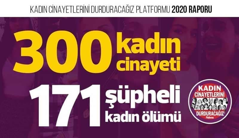 Kadın Cinayetlerini Durduracağız Platformu’nun 2020 yıllık raporu, Türkiye’nin en büyük sorunlarından biri olan kadın cinayetlerinin artarak devam ettiğini gözler önüne serdi.