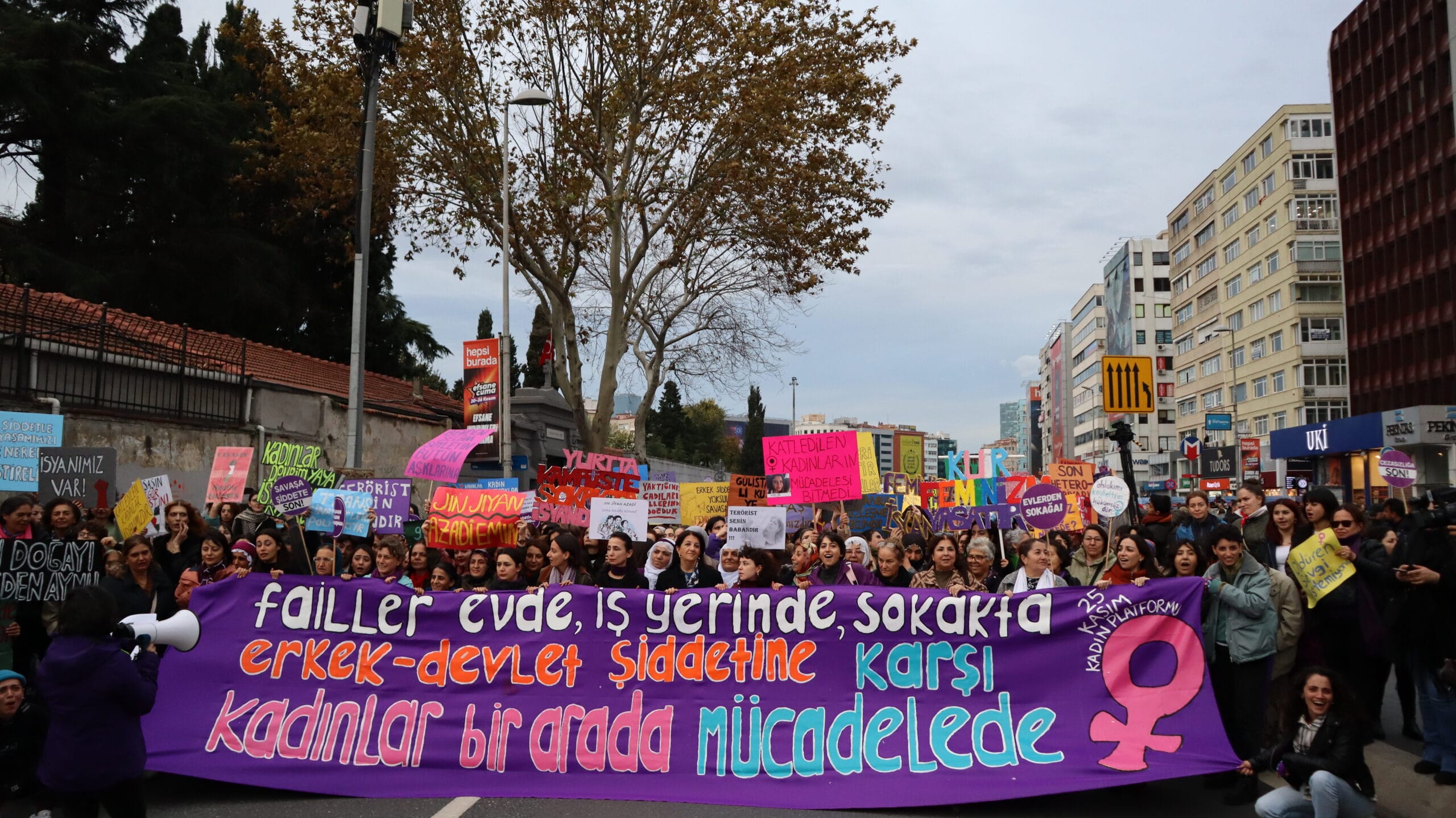 25 Kasım Kadına Yönelik Şiddete Karşı Uluslararası Mücadele Günü’nde kadınların bu yıl İstanbul’daki adresi Mecidiyeköy Meydanı oldu. 25 Kasım Kadın Platformu’nun çağrısıyla Mecidiyeköy’de yan yana gelen yüzlerce kadın, erkek devlet şiddetine, kadın cinayetlerine, sömürü ve savaş politikalarına, erkek egemen sistemin tüm saldırılarına karşı mücadele ve dayanışmalarının süreceğini vurguladı.