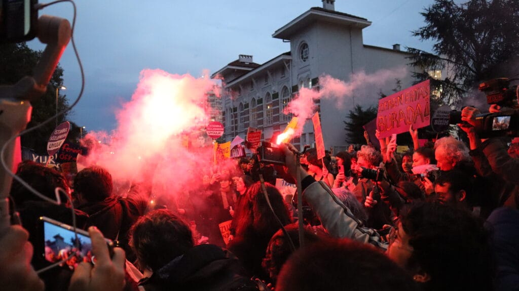 Baklacı, şöyle devam etti: “Filistin’den Rojava’ya, İran’dan Afganistan’a direnen kadınların sesi olmak için, savaş politikalarına karşı durmak için bir araya geldik. Şiddet faillerine, failleri aklayan yargıya, cezasızlık politikalarına karşı, bir kişi daha eksilmemek için erkek-devlet şiddetine karşı bir araya geldik. Aile politikalarına karşı makbul kadınlar olmayacağız demeye, LGBTİ+fobiye izin vermeyeceğiz demeye geldik. Yarattığınız krizin bedelini ödemeyeceğiz, yoksulluğa mahkûm edilmeyeceğiz demek için bir araya geldik. Erkek-devlet şiddetine, savaşa, sömürüye, yoksulluğa, çocuk o istismarına, LGBTİ+fobiye, bizi mahkûm etmeye çalıştığınız bu yaşama karşı direnişimizle bir aradayız, isyandayız!”