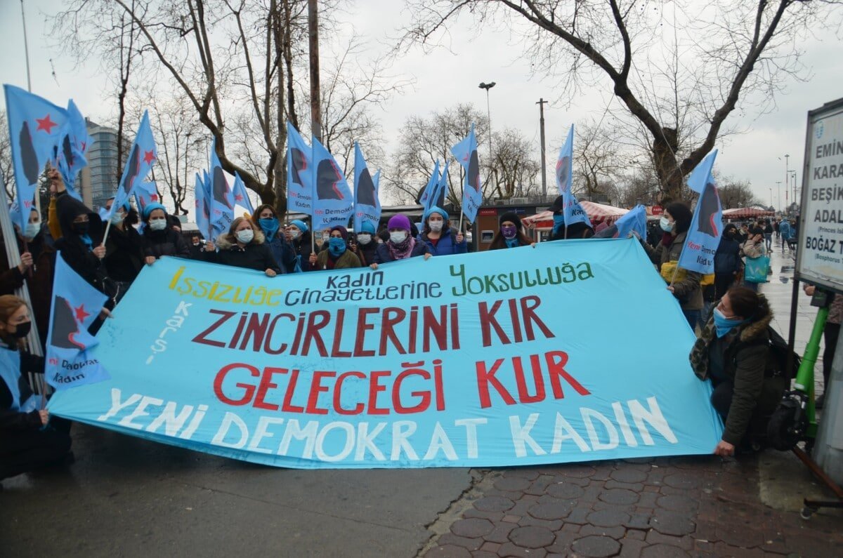 Dayatılan işsizlik ve yoksulluğa karşı kadınların emeklerine sahip çıktıkları, ekonomik özgürlük talebinde bulunduğu kaydedilen açıklamada, “Geçtiğimiz yıl boyunca ‘İstanbul Sözleşmesi Yaşatır’ demekten vazgeçmedik, her bulduğumuz fırsatta da söylemekten vazgeçmeyeceğiz. Erkek şiddetine karşı hayatını savunduğu için tutsak edilen kadın arkadaşlarımızın sesini sesimize katıyoruz. Özgür, eşit ve şiddetsiz bir yaşam için mücadele eden, prangalarla evlere, ilçelere hapsedilen bütün kadınlar için bir aradayız” denildi.