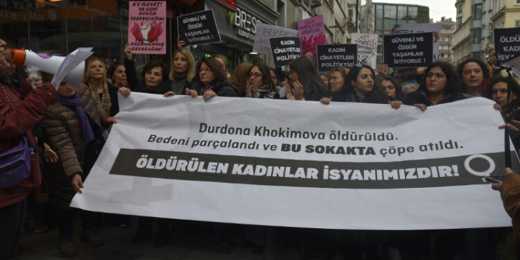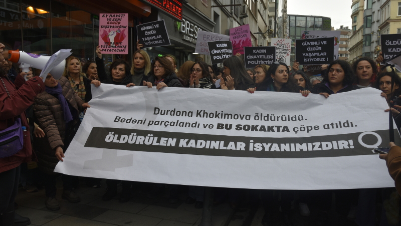 İstanbul’da katledilen Durdona Khokimova için kadınlar yürüyüş düzenledi. Şişli’deki Osmanbey metrosu Pangaltı durağında bir araya gelen kadınlar Durdona Khokimova’nın cansız bedeninin bulunduğu Kuyulubağ sokağa yürüdü.