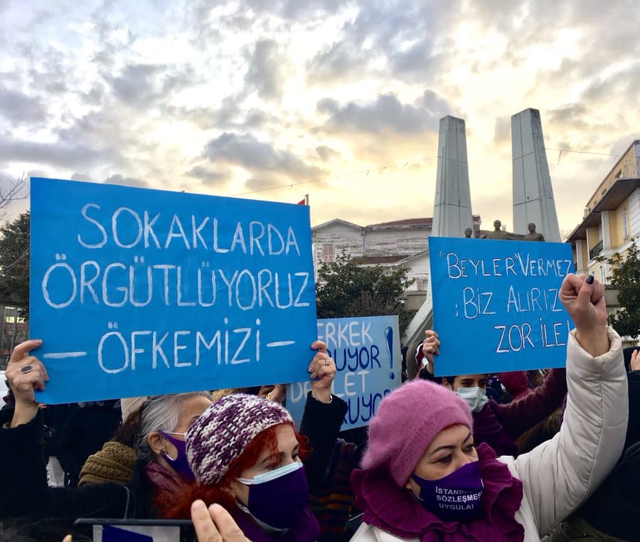 Sadece eşlerinden işkence görenler ya da cinayete kurban gidenler değil. Kadına şiddet her yerde; işyerinde patrondan çalışma arkadaşlarından, sokaktaki sözlü tacizler, otobüs durağında beklerken hiç tanımadığın bir erkekten gelen taciz… Bunlara daha caydırıcı cezalar eklemek yerine, sözleşmenin feshi ile bunlara çanak tutuklarını düşünüyorum ve bu yasanın feshini değil, eğitimlerle desteklemeleri gerektiğini düşünüyorum.