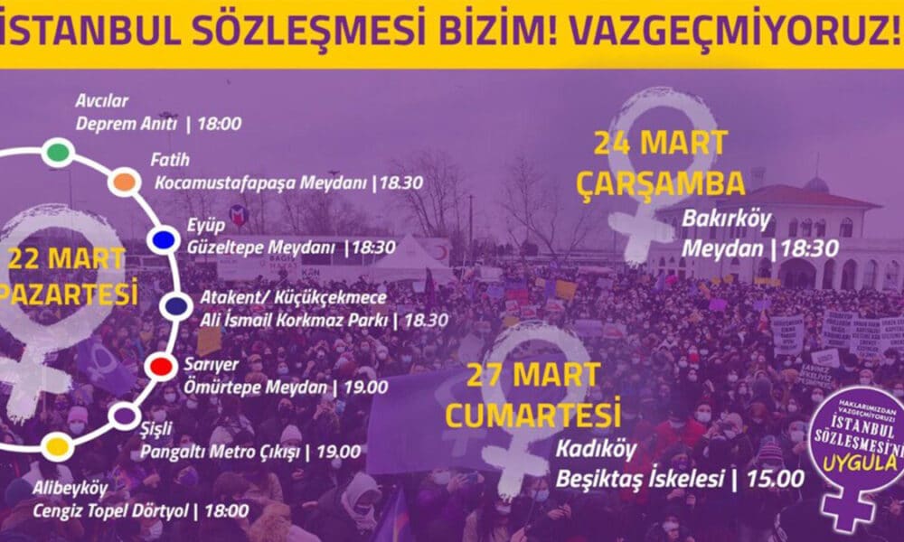 HABER MERKEZİ- İstanbul’un yedi farklı noktasında bu akşam kadınlar, İstanbul Sözleşmesi’nden çekilme kararına karşı sokaklara çıkıyor.
