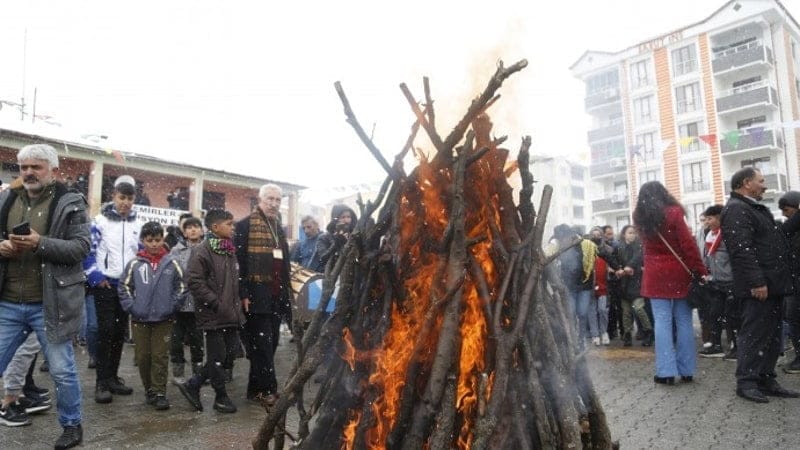 Konuşmaların ardından Mazlum Doğan’ın ablası Arife Doğan ve HDP parti yöneticileri Newroz ateşini tutuşturdu. Ateş etrafında halay çeken kitle, sık sık “Bê Serok jiyan nabe” ve “Jin, jiyan, azadî” sloganları attı. Kutlamalar, Jan Axin’in şarkılarıyla sona erdi. Kutlamalar sonrası gençler, “Ha Gerilla” şarkısıyla yürüyüş düzenledi.