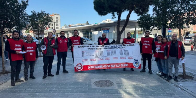 İşçiler adına konuşan DİSK/Genel-İş İzmir 10 No’lu Şube Sekreteri Güntay Kıray, “Kent AŞ bünyesinde çalışan 540 işçiyiz. Buranın emekçileriyiz. Biz bu şehir için hizmet ediyoruz ama emeğimizin karşılığını alamıyoruz. 7-8 aydır maaşlarımız ödenmiyor. En son temmuz ayında 10 bin TL ödendi. Dayanacak gücümüz kalmadı” dedi.