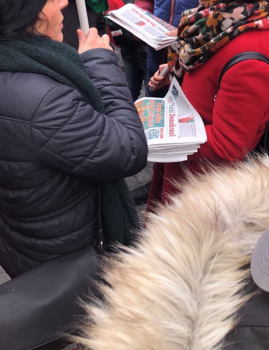 Yürüyüşte ve miting alanında 3 Ocak itibari ile yayın hayatına başlayan Yeni Demokrasi gazetesi tanıtım broşürü ve gazete dağıtımı yaygın bir şekilde yapıldı. Aynı zamanda “PARİS KATLİAMININ 5. YILINDA FAŞİST TÜRK DEVLETİ YURTDIŞINDA YENİ KATLİAMLAR PEŞİNDE!” başlıklı PARTİZAN imzalı Fransızca bildirilerin dağıtımı yapıldı.