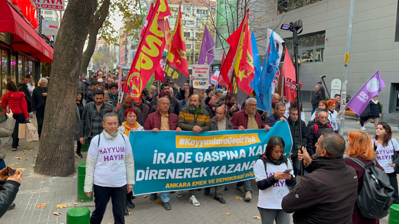 Ankara Emek ve Demokrasi Güçleri’nin çağrısı ile Çankaya Belediyesi önünde toplanan kitle, Dersim ve Ovacık belediyelerine dönük kayyım darbesine tepki gösterdi. Kitle, belediye binasının önünden Sakarya Caddesi’ne “İrade gaspına karşı direnerek kazanacağız” pankartı ve sloganlarla yürüdü.