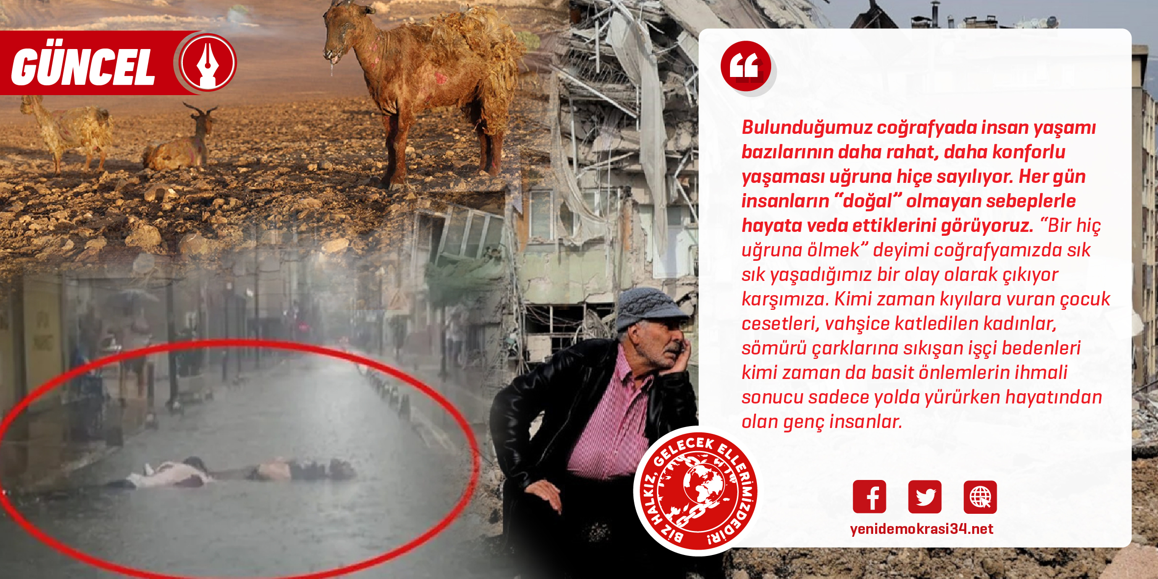 Yeni Demokrasi; işçi sınıfı ve emekçilerin, ezilen ulus ve milliyetlerin, geleceksiz bırakılan gençliğin, devrimci tutsakların ve devrimci basının sesidir.