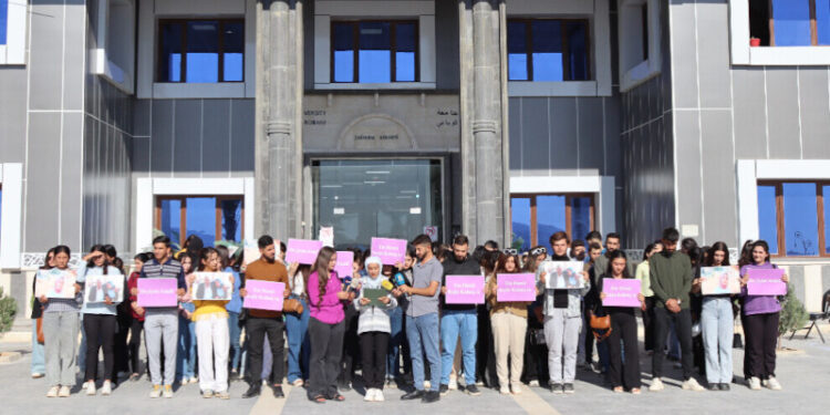 Kobanê Üniversitesi öğrencileri, Van’da katledilen Rojin Kabaiş’in ölümünün aydınlatılması için açıklama yaptı.