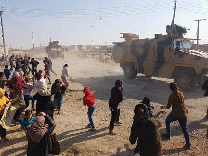 Rusya ve TC ortak devriyesi, Kobanê’nin 16 kilometre doğusundaki Qeremox köyünde protestoyla karşılaştı. Köy halkı, Rusya ve TC askeri araçlarına çürük meyve, yumurta ve ayakkabı fırlatarak tepki gösterdi.
