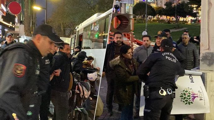 Kitleyi ablukaya alan polis HDP Kocaeli İl Eşbaşkanları Aynur Santo ile Şahabettin Işık, Darıca İlçe Eşbaşkanı İdris Ay, İzmit ilçe yönetiminden Ali Akbal, Alattin Artuer ve Sosyalist Yeniden Kuruluş Partisi İl Yöneticisi Necati Altıtoprak’ı işkence ile gözaltına aldı.