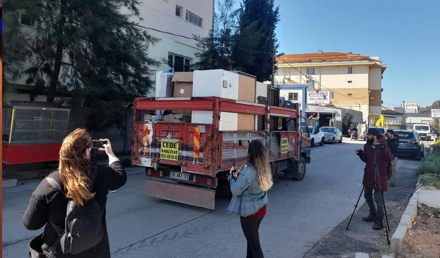 Maraş’ta meydana gelen depremlerin ardından bölgedeki depremzedelerin bir kısmının İzmir’deki konteyner kente getirilmesi kararlaştırıldı. Konteyner kentte yaşayan İzmirli depremzedeler tebligat şoku yaşadı. Geçici konaklama merkezinde bulunan toplam 207 konteynerin 176’sında 482 kişi konaklarken, bunlardan konut hakkı sahibi olan 10 aile dışındakilere tebligat gönderilerek konteynerleri boşaltmaları istendi. Verilen bir haftalık sürenin bugün itibariyle dolmasıyla depremzedelerin polis zoruyla tahliye ettirilmesi için düğmeye basıldı. Sabah saatlerinde konteyner kentin bulunduğu bölgeye gelen çevik kuvvet, içeri girerek konteynerlerde tek yaşayan depremzedeleri dışarı attı. Özel eşyalarını alıp dışarı çıkan depremzedeler, gidecek yerleri olmadığını ve konaklama merkezinin kapısında bekleyeceklerini söyledi.
