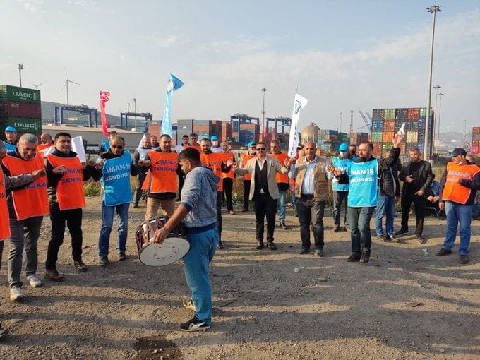 Liman-İş Sendikası’nın açıklaması şöyle: “Sendikamızın örgütlenme faaliyetleri yürüttüğü, İzmir Aliağa’da bulunan TCE Ege Konteyner Liman İşletmeleri’nde çalışanlar 2019 yılında sendikamıza üye olmuştur. 05/08/2019 tarihinde Aile, Çalışma ve Sosyal Hizmetler Bakanlığı tarafından sendikamıza, çoğunluğu sağladığımıza dair olumlu yetki tespiti gelmiştir. Ancak işveren sendikalaşmayı engellemek için yetki itirazında bulunarak hem süreci uzatmış hem de işçilerin sendikal haklarını kullanmasına engel olmuştur. Sendikamız dava sürecinde de mücadelesini sürdürmeye ve TCE Ege işçilerinin yanında olmaya devam etmiştir. Bu mücadele sonucunda yargı süreci tamamlanmış ve Çalışma ve Sosyal Güvenlik Bakanlığı tarafından 05/10/2021 tarihinde yetki belgesi tarafımıza gönderilmiştir. Her ne kadar sendikamız sürecin barış içinde yürütülmesinden yana olsa da, yargı sürecinin tamamlanıp, sendikamızın yetki belgesini alınmasına rağmen işveren mahkeme kararını tanımayarak tüm baskılarına devam etmiş ve yasadışı davranmayı sürdürmüştür. Toplu İş Sözleşmesi görüşmeleri başlamadan önce Mehmet Öztürk, Ahmet Hereke ve Eray Durmaz isimli 3 çalışanı haksız yere işten atılmıştır.”