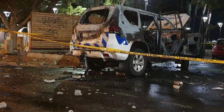 Bir polis aracına molotof atılırken, bölgedeki diğer devriye arabaları ve özel araçlar da hasar gördü.