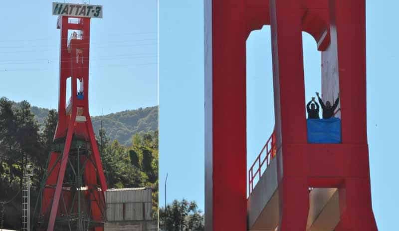 Amasra’da faaliyet gösteren özel maden şirketinde çalışan 170’i sendikalı 205 işçi, ‘ekonomik kriz’ olduğu söylenerek, 22 Eylül’de işten çıkarıldı. Aradan geçen zaman içinde işçiler, alacakları olan 51 günlük ücretlerini, bayram ikramiyelerini ve kıdem tazminatlarını alamadıkları iddiasıyla 5 Ekim Cuma günü sabah saatlerinde maden ocağında eyleme başladı. İşçilerden Serdar Aslan ve Bülent Çevik, şirkete ait 80 metre yükseklikteki asansör kulesine çıkarak, eylem başlattı. Asansörün 50 metre yüksekliğinde duran işçiler, aşağıdaki arkadaşlarının uzattıkları iple yiyecek ihtiyaçlarını karşılıyor.