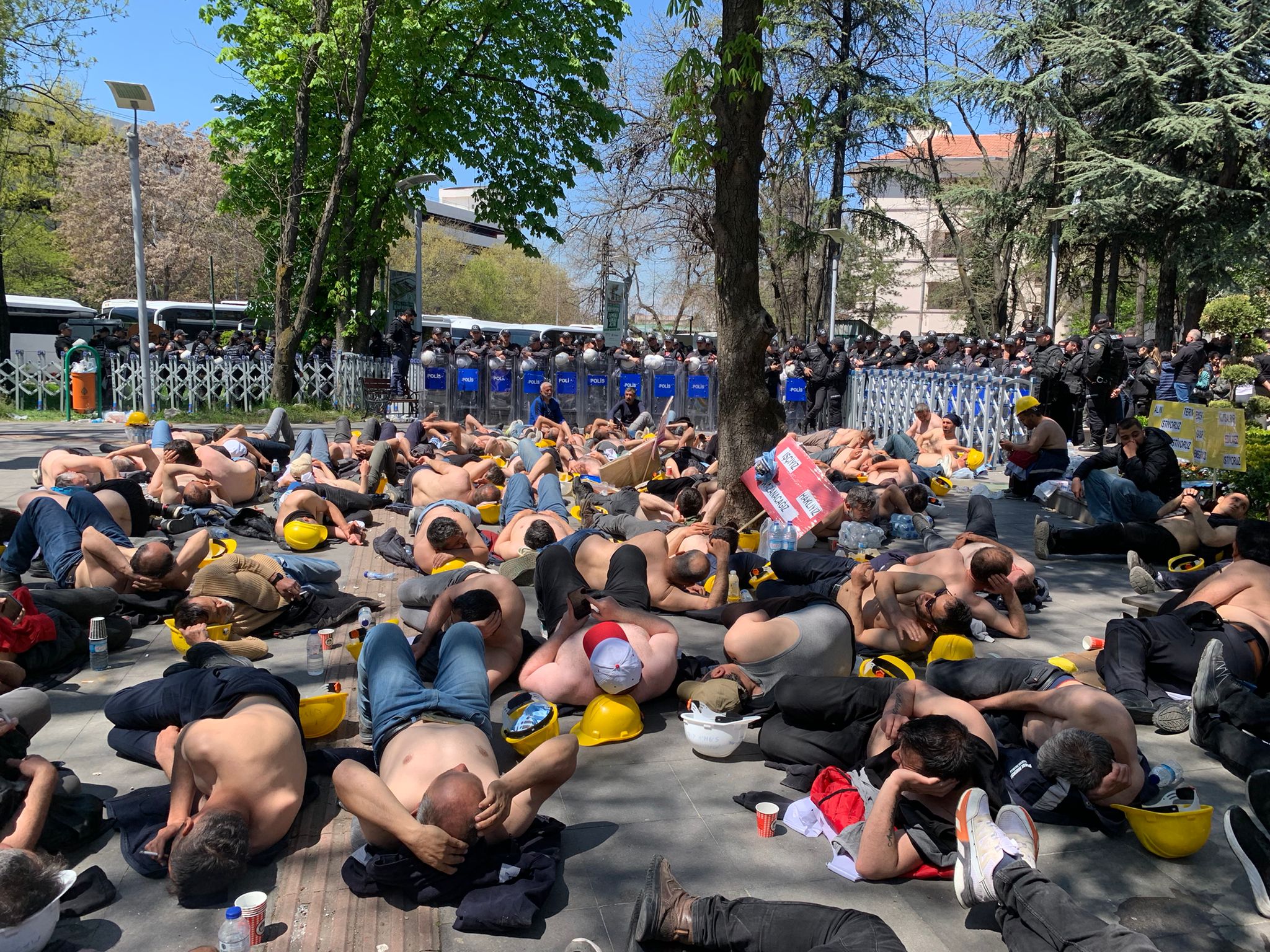 Bağımsız Maden-İş sendikası sanal medya üzerinden yaptığı açıklamada işçilerin kimseyle görüşmeyeceğini, direnişini sürdüreceğini açıkladı: “Kurtuluş Parkı’nda abluka altındayız. Kimseyle konuşmuyor, kimseyle görüşmüyor, bedenimizi betona yatırıyoruz.