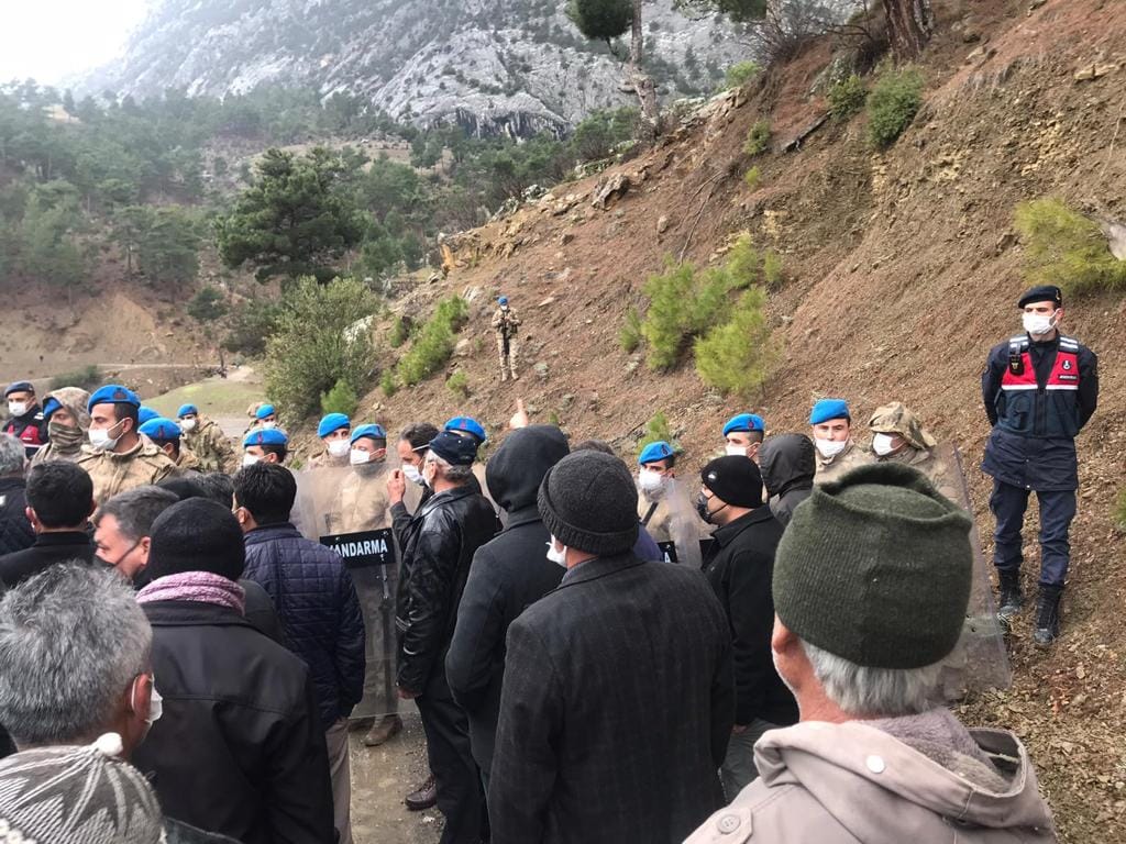 Mermer ocağı için jandarma eşliğinde kesime başlayan yetkilere tepki gösteren ve aralarında astım hastası olan bir kişinin de bulunduğu 30 kişiye önce biber gazı sıkıldı sonra da gözaltı saldırısında bulunuldu. 11 köyden bir araya gelen halk, ifadelerinin ardından sonra serbest bırakıldı. Kesim çalışmaları ise şimdilik durduruldu.