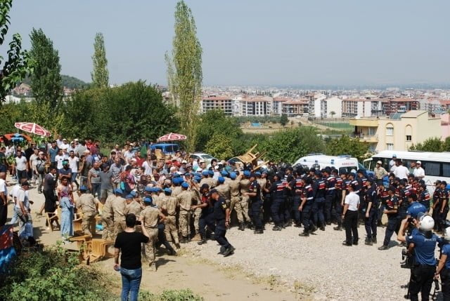 HABER MERKEZİ- Manisa’da Hacıbektaşlı Mahallesi’nde SANKO şirketi tarafından yapılmak istenen JES için ağaç kesilen alanda santral kurma çalışmalarına başlandı. Alana yığılan binden fazla polis ve jandarma olası bir eyleme karşı iş makinelerini ve vinçleri koruyor.