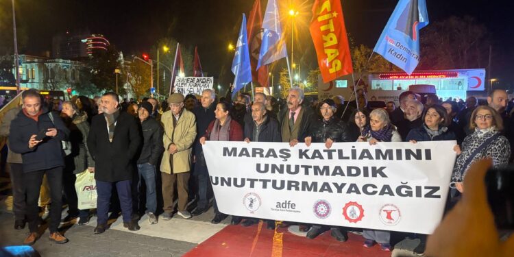 Alevi Bektaşi Federasyonu (ABF), Türkiye Alevi Federasyonu (ADFE), Hacı Bektaş Veli Anadolu Kültür Vakfı, Alevi Kültür Dernekleri, Pir Sultan Abdal Kültür Derneğinin çağrısıyla aralarında Partizan ve Yeni Demokrat Kadın‘ın da olduğu çok sayıda siyasi partî ve demokratik kitle örgütü, Maraş Katliamının 47. yılında, katliamda yitirilenleri andı. “Maraş Katliamını Unutmadık, Unutturmayacağız” pankartı açılan eylemde, mumlarla “Maraş 78” yazıldı. Anma saygı duruşu ve gülbenglerle başladı.