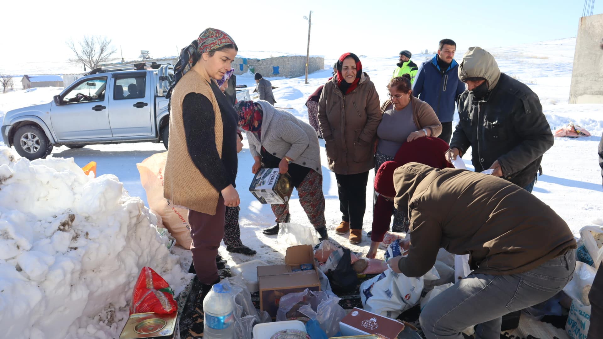 Ayrıca Afşin’e bağlı Haticepınar köyüne de gıda erzaklarının dağıtımı yapıldı. Köylülerin sorularından biri olan şehir merkezinden gıda ihtiyacını karşılaması depremden sonra zorlaştı. Haticepınar köyünde de aynı sorun yaşanıyor.