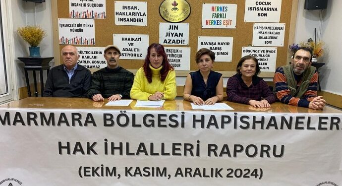 İnsan Hakları Derneği (İHD) İstanbul Şubesi, Marmara Bölgesi’ndeki hapishanelerde Ekim, Kasım ve Aralık aylarında yaşanan ihlal raporunu, dernekte düzenlediği basın toplantısıyla açıkladı. Raporu, İHD İstanbul Şube Başkanı Gülseren Yoleri ile İHD İstanbul Şubesi Hapishane Komisyonu üyesi Meral Nergis Şahin açıkladı.