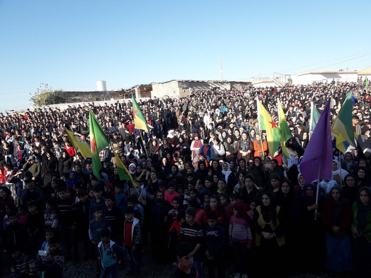 TC’nin hava saldırısında hayatını kaybeden 4 kadının cenaze töreni için toplanan binlerce kişi tören öncesi Birleşmiş Milletler temsilciliğine doğru yürüyüşe geçti.
