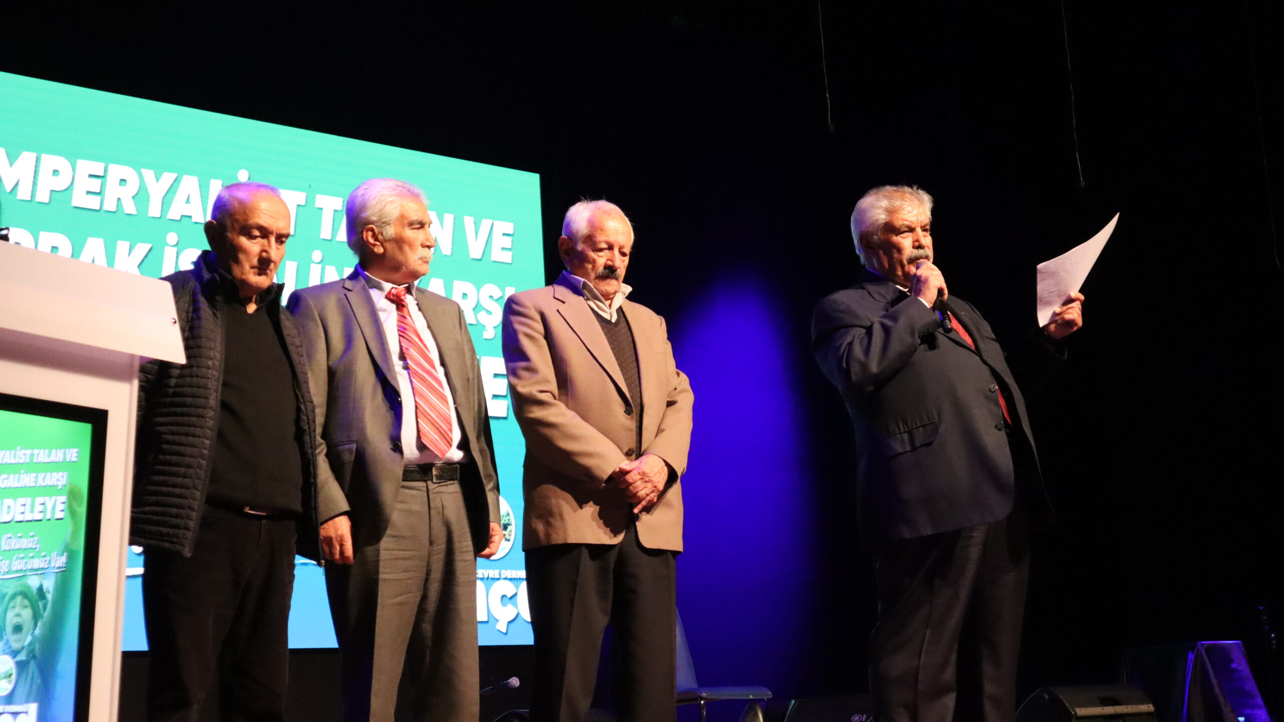 MÇD Yönetim Kurulu Başkanı Hatun Esen gelen kitleyi selamlayarak konuşmasına başladı. Konuşmanın devamında “Bugün burada bir halkın, bir yaşamın, bir geleceğin sesi olarak buluştuk! Çünkü bu ülkede yıllardır sistematik bir saldırıyla karşı karşıyayız. Bu saldırı kişisel değil, lokal değil. Bu saldırı sınıfsal, politik ve örgütlüdür. Emperyalist şirketler ve onların iş birlikçileri, köylünün toprağını gasbederek onları mülksüzleştirerek, göçe zorlamak istiyor. Unutmayalım ki yeni göçler sadece fiziksel bir kayıp değil; yeni yıkımlar, bilinmezlikle dolu bir yaşama sürükleniş, kültürel erozyon, inançların yok olması, dil kaybı ve ruhsal travmalar anlamına geliyor. Toprağını kaybeden halk, köklerinden koparılıyor, kimliği ve hafızası yok edilmek isteniyor!” diyen Esen birlikte mücadelenin önemine değindi.