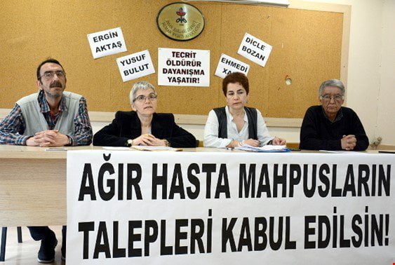 İnsan Hakları Derneği’nde yapılan basın toplantısına İHD Hapishane Komisyonu üyeleri ve tutsakların avukatı Gülizar Tuncer katıldı. Komisyon adına konuşan Mehmet Acettin, hasta mahpusların ciddi sağlık sorunları nedeniyle yaşam mücadelesi verdiklerini, tedavi haklarının engellendiğini belirtti. Acettin, 20 Nisan’dan beri açlık grevinde olan tutsakların ameliyat ve tedavilerinin yapılması, hapishane koşullarının düzeltilmesi ve sevk taleplerinin karşılanması için çağrı yaptı.
