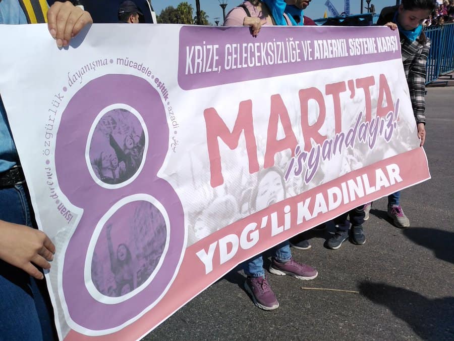 Aralarında Yeni Demokrat Kadın ve YDG’li kadınların da olduğu Mersin Kadın Platformu 8 Mart Dünya Kadınlar Günü dolayısıyla eski Tevfik Sırrı Gür Stadyumu Meydanı’nda miting düzenledi.
