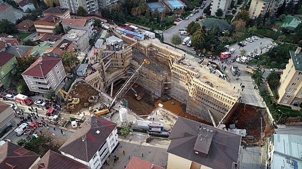 Parseller Mahallesi Kesikkaya Caddesi’nde büyük bir gürültüyle çöküntü oldu. Çöküntünün meydana geldiği yerin yanında bulunan siteye ait güvenlik kulübesi ile şantiyeye ait konteyner de göçük altında kaldı.
