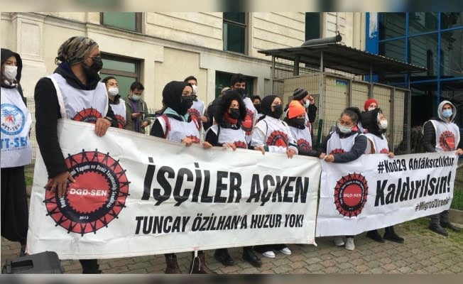 HABER MERKEZİ- Migros’un Kocaeli Şekerpınar’daki deposunda çalışırken ücretsiz izne çıkarılan ve Kod 29 ile işten atılan DGD-SEN üyesi işçiler, 29 Mart günü şirketin sahibi ve TÜSİAD YİK Başkanı Tuncay Özilhan’ın İstanbul Beykoz’daki evinin önünde eylem yaptı. Eyleme saldıran polis, 17 işçiyi gözaltına aldı. İşçiler aynı günün gecesi serbest bırakılırken Beykoz Devlet Hastanesi önünde açıklama yaparak Tuncay Özilhan’ın villasının önünde eylemlerine devam edeceklerini belirtti.