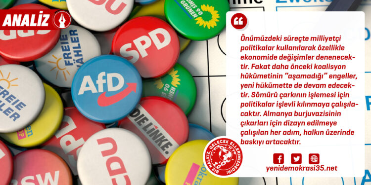 Milliyetçiliğin yükseldiği bir dönemin içindeyiz. Geniş halk yığınları milliyetçi söylemlerle ayrıştırılıyor. Ulusal burjuvazinin çıkarlarını koruyacak politikaların kitlelerdeki yankısı bugün daha fazla. Emperyalist-kapitalist ekonomi politika tıkanmış vaziyette. Bu tıkanıklığı aşmak için ayrıştırıcı, baskıcı yönetimlere geçiş eğilimleri artıyor. Bunun bir anda olmayacağı açık. Fakat emperyalist devletlerin Ukrayna işgaliyle görünür olan pazar rekabeti ve kutuplaşma siyaseti devam ediyor. AfD bugün politikalarını freni boşalmış kamyon misali ilerletmeyecektir. Fakat bu politikaların emperyalist rekabet ve pazar kavgasında yer bulacağı açıktır. Bunu Trump dönemiyle ayyuka çıkan ABD emperyalizminin politikaları için söylemek mümkün. Önümüzdeki süreçte milliyetçi politikalar kullanılarak özellikle ekonomide değişimler denenecektir. Fakat daha önceki koalisyon hükümetinin “aşamadığı” engeller, yeni hükümette de devam edecektir. Sömürü çarkının işlemesi için politikalar işlevli kılınmaya çalışılacaktır. Almanya burjuvazisinin çıkarları için dizayn edilmeye çalışılan her adım, halkın üzerinde baskıyı artacaktır. Anti faşist-anti emperyalist mücadele AfD ve özellikle seçimler sürecinde yükseldi. Halkın bu isyanının, devrimci mücadelenin saflarına çekilmesi zorunluluğu var. Avrupa’da, hatta tüm dünyada yükselen baskıcı politikaların özünde emperyalist barbarlık vardır. Almanya’da seçimler sistemin bekası için sömürücü sınıfın lehine işlenmeye devam edecek. İçerikteki devrimci dinamiklere ilgisizlik dayatılacak. Gelecekte bunun örneklerini daha fazla göreceğiz. Buna karşı mücadelenin önemi büyüyor…