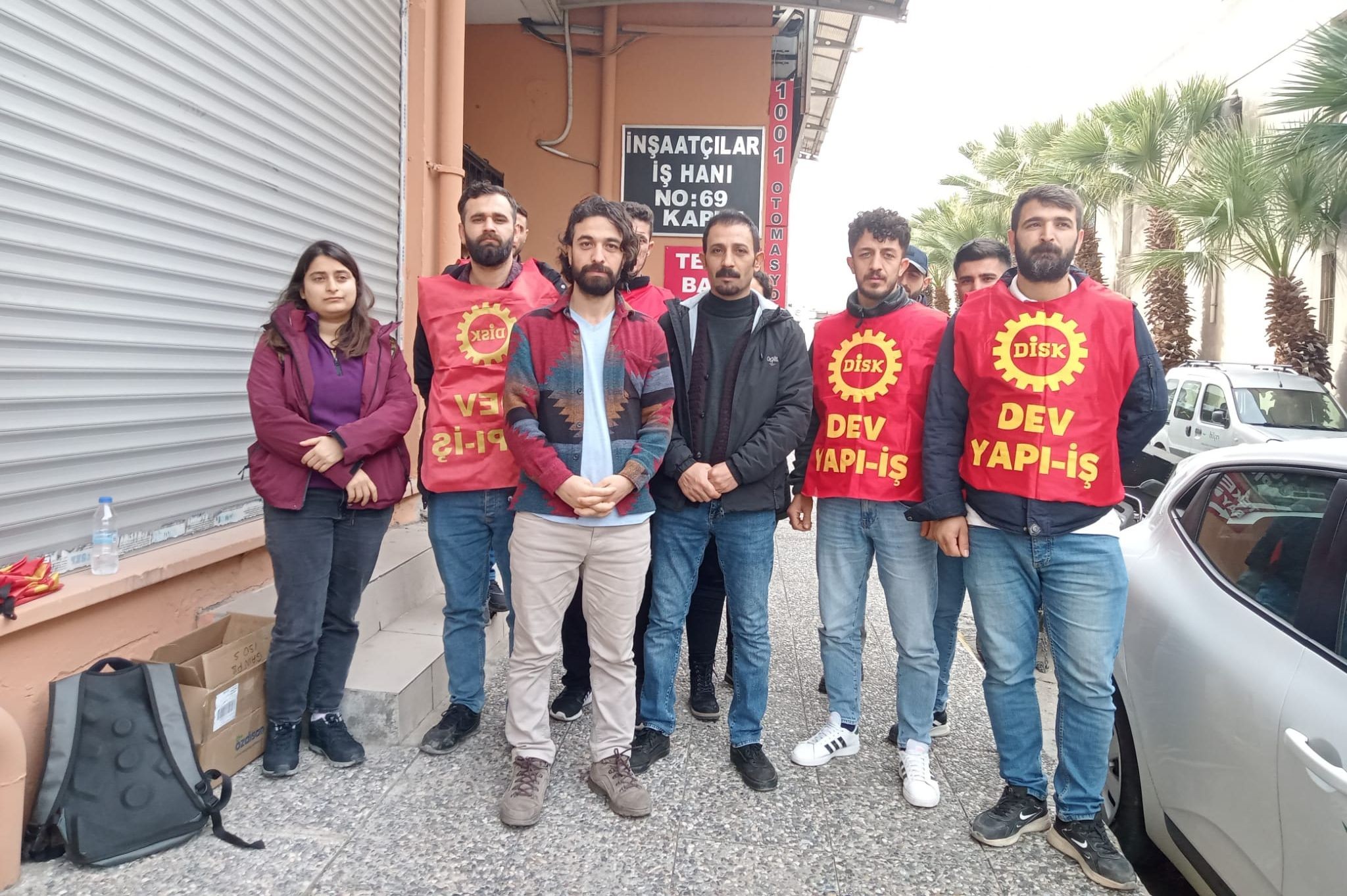 Devrimci Yapı, Yol ve İnşaat İşçileri Sendikası, Muğla Milas ilçesinde bir inşaatta çalışırken 2 aydır maaşlarını alamayan inşaat işçileri için şirketin İzmir’de bulanan ofisi önünde basın açıklaması yaptı. Genel-İş ve KESK üyelerinin destek verdiği açıklamada işçiler, “İnşaat İşçisi Köle Değildir” ve “Ücret Haktır Gasp Edilemez” sloganları attı.