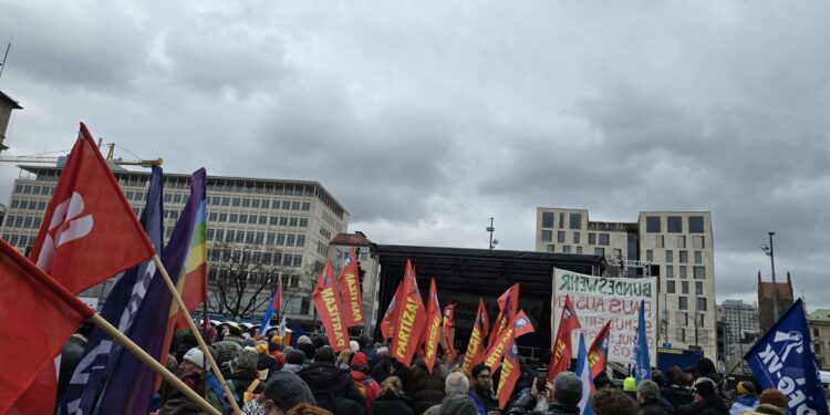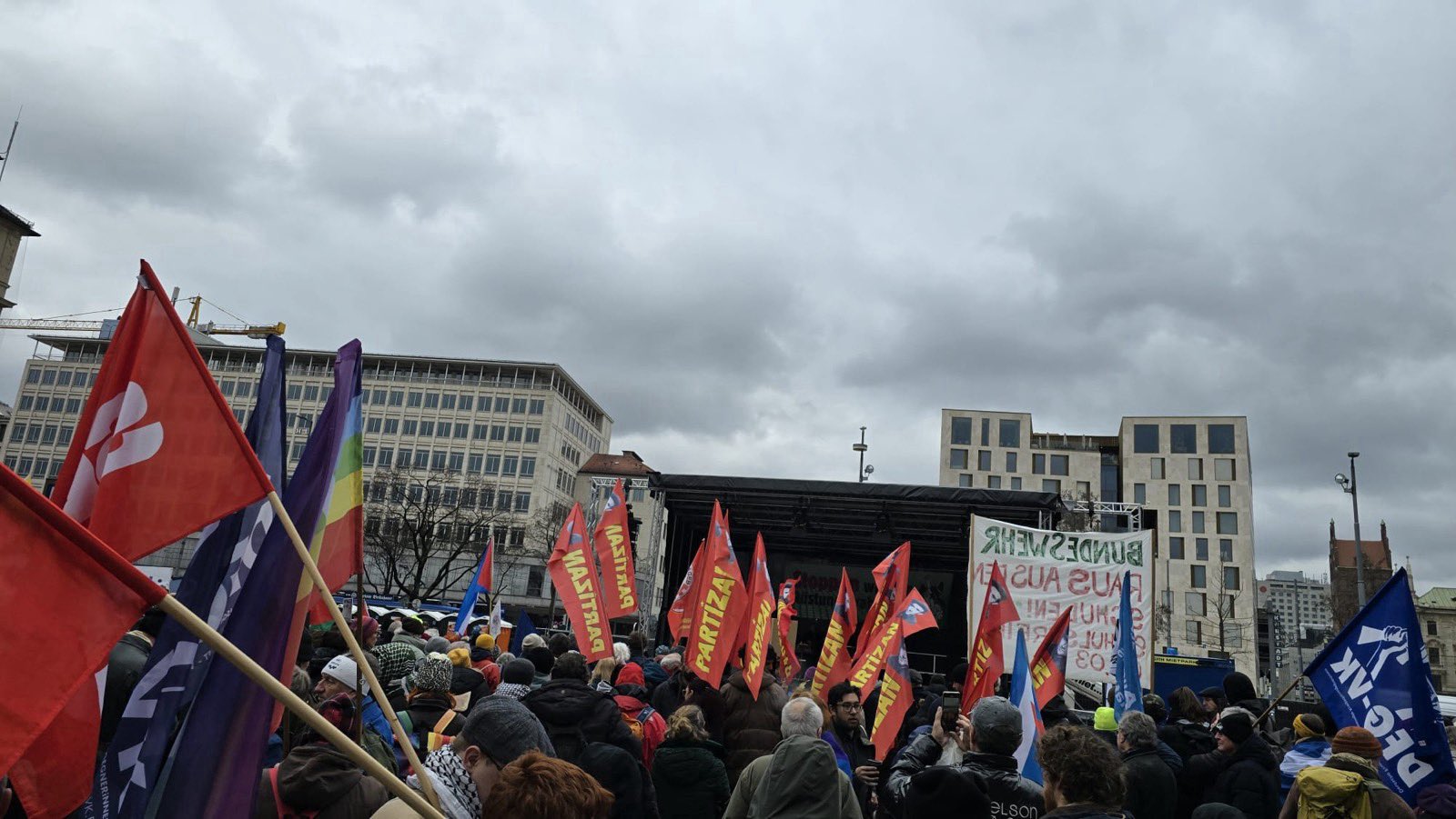 Anti NATO platformunun çağrısıyla Münih’te eylem düzenlendi. Partizan ve Avrupa Göçmen Emekçiler Birliği’nin de (AGEB) aralarında olduğu çok sayıda antifaşist ve antiemperyalist kurum eylemde yerini aldı. Etkinlik, Münih’in Stachus Meydanı’nda yapılan mitingle başladı. Yapılan konuşmalarda silahlanma politikaları, küresel güçlerin pazar paylaşımı ve savaş politikalarına yönelik eleştiriler dile getirildi. NATO’nun dünya halklarına karşı bir savaş aygıtı olduğu vurgulanarak mücadele çağrısı yapıldı. Kürsüden Rojavalı Kadın Meclisleri ve Filistin Komitesi adına da konuşmalar gerçekleştirildi.