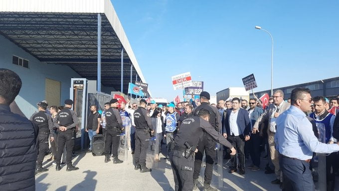 Fabrika içindeki işçilerin ‘dışarıyla ilişkisini kesmek’ için farklı kapılardan çıkarılacağı tezi üzerine sendika üyeleri, fabrikanın iki başka çıkışı önünde toplandı. Saat 17.30’da başlayan bekleyiş 18.30’a kadar sürdü.