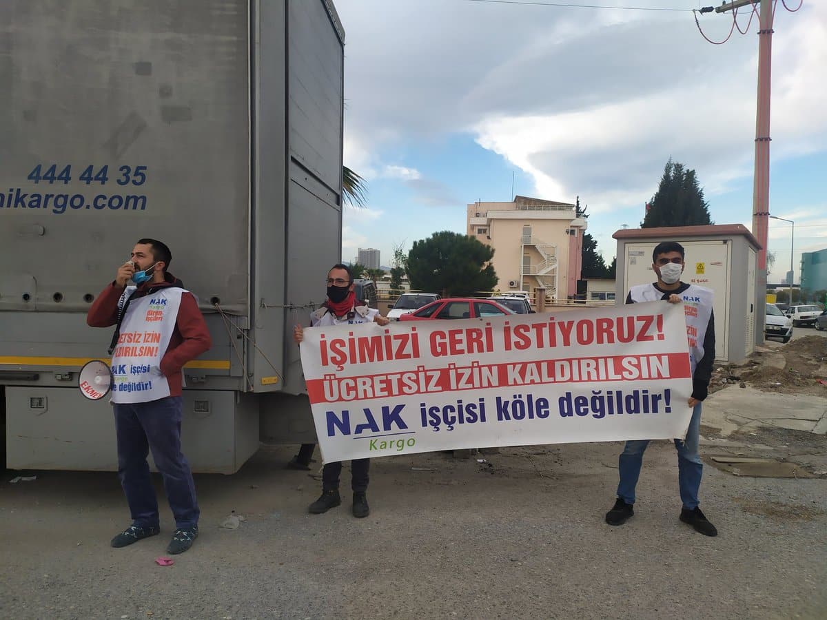 HABER MERKEZİ- İzmir Işıkkent’te bulunan NAK Kargo’da 5 işçi, ‘pandemi ve mevsimsel geçiş süreçlerine bağlı olarak işlerin azalması’ gerekçe göstererek ücretsiz izne çıkarılmasının ardından direnişe geçti. Kargo önünde 16 gündür direnen işçiler, iş yerinde önemli kazanımlar elde ettiklerini ifade ederek direnişi sonlandırdıklarını duyurdu.