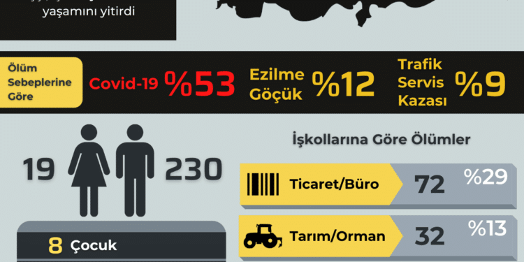 - En fazla ölüm nedenleri Covid-19, ezilme/göçük, trafik/servis kazası, yüksekten düşme, boğulma, patlama/yanma ve intihar.