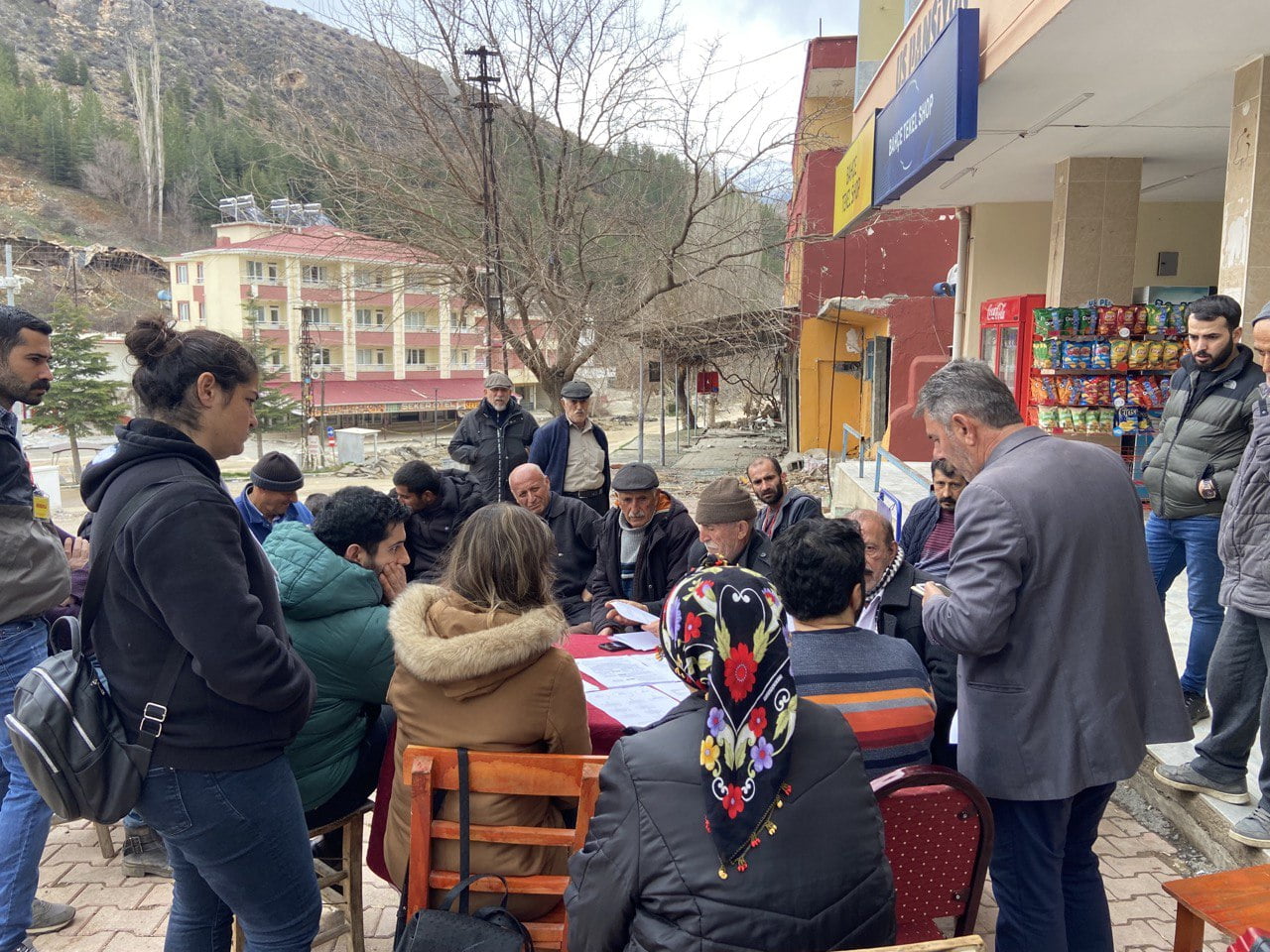 Depremin ilk günlerinden itibaren devletin enkaz altında kaldığını dile getiren halk bir gerçeğe ışık tutarken geride bıraktığımız süreçte halkın bu tanımı giderek güçlük kazanıyor. Maraş’ın ilçelerinde dayanışma çalışmalarını sürdüren Munzur Çevre Derneği üyeleri bir yandan halkın temel ihtiyaçlarını dayanışmayla karşılarken diğer yandan da barınma sorunu üzerine çalışmalar yürütüyor. Nurhak ve Ekinözü’nde Çağdaş Hukukçular Derneği (ÇHD) ile birlikte hukuki süreç üzerinde bilgilendirme toplantıları yapılarak halkın ilerleyen süreç hakkındaki sorularına cevap verildi. Halkın en temel barınma hakkının karşılanması noktasında devletin halkı kaderine terk ettiğini dile getiren MÇD’liler bu noktada halkın ilerleyen süreçte bir araya gelerek hakları için mücadele etmesinin gerektiğine vurgu yaptılar.